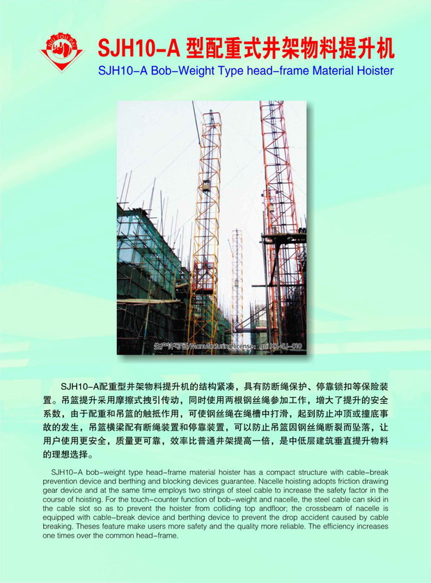 该机结构紧凑,具有防断绳保护、停*锁扣等保险装置,质量可*、效率比普通井架高一倍,是中低层建筑垂直运输的理想选择。